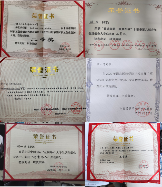 青年常为新,青年也最能为新。在创新奋斗方面,胡一鸣学长可是有着十足的话语权。胡一鸣学长现为杜若生物的骨干,这几年的大学生活他带领着团队自主研发了诸多产品,收获了一致好评。他还参加诸多大学生创新创业活动,获得了三创赛一等奖,互联网加大学生创新创业大赛二等奖等等许多的省赛以及国赛的奖项。