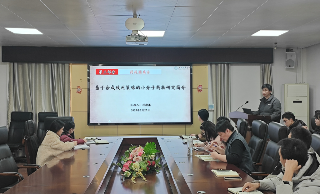本网讯(通讯员 邓德鑫)2025年2月27日,太阳成集团tyc539教工第一党支部在太阳tyc539六楼会议室举办了第六期“药苑圆桌派”特色活动。活动邀请制药工程教研室邓德鑫博士作题为“基于合成致死策略的小分子药物研究简介”的报告,教工第一/二党支部党员群众参加了活动。