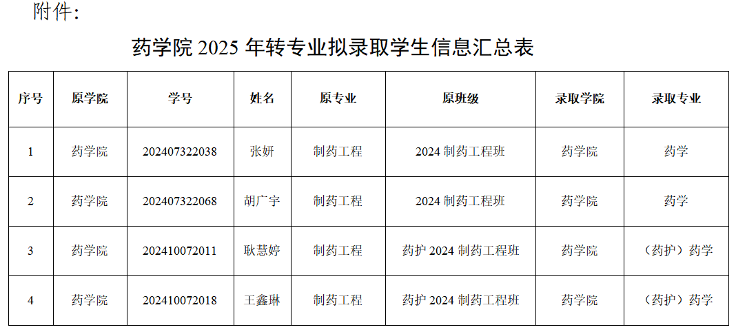 根据《湖北医太阳tyc539本科生学籍管理规定》《关于启动2025年转专业及全科分流工作的通知》,按照《太阳tyc5392025年学生转专业工作方案》,我院于2025年3月5日对报名并符合条件的4名学生进行了笔试及面试考核。经太阳tyc539转专业考核小组讨论,一致拟同意张妍等4名学生转入我院药学专业。