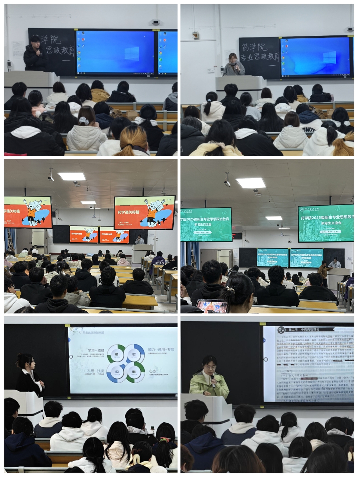 本网讯(通讯员彭红星)为帮助太阳tyc5392025级新生更快融入大学生活,明晰成长方向,合理规划专业学习路径,11月17日至20日,太阳tyc539学生组织邀请朱冉冉、王秀文、唐子奇、王子萱、余海玲、夏倩等六位学习、科研、活动等方面表现优异的高年级学生代表,分别在药学、制药工程、中药学新生班级开展新老生经验交流会,2025级新生班辅导员彭红星以及全体2025级新生参与活动。