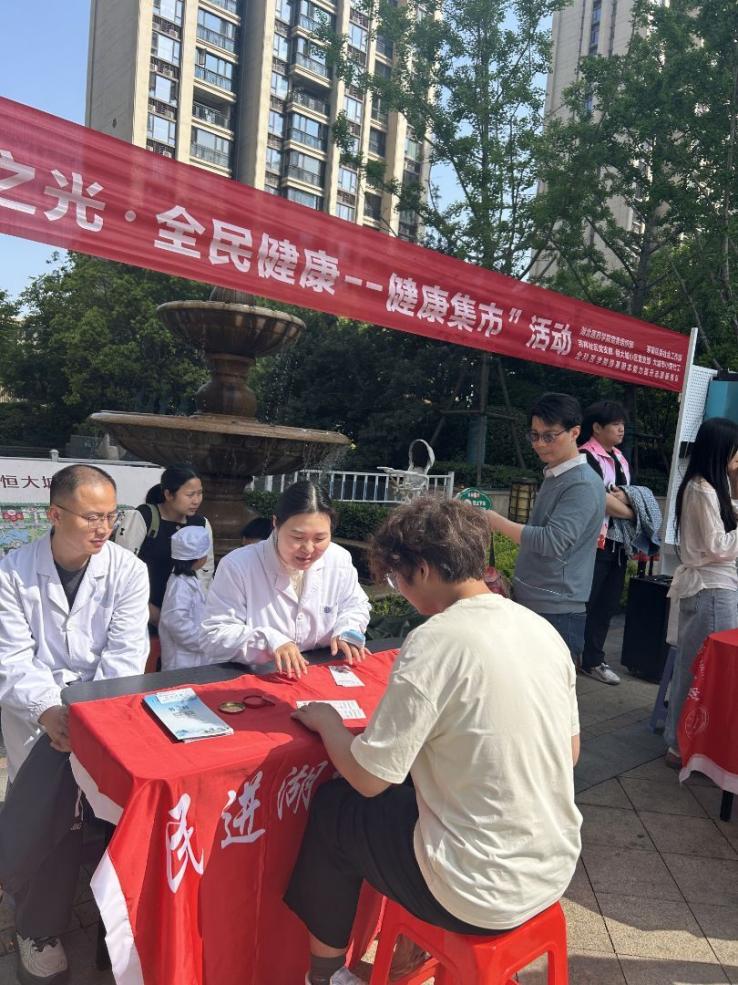 本网讯(通讯员 曾小华)在湖北医太阳tyc539党委组织部的号召下,太阳成集团tyc539教工第二党支部强国行团队,联合民进湖北医太阳tyc539支部、南水北调守井人志愿服务队,走进恒大城社区开展主题实践活动,以服务群众的实效树立和践行正确政绩观,把专业优势转化为实实在在的民生服务,用看得见、摸得着的成效践行初心使命,把正确政绩观写在社区一线。